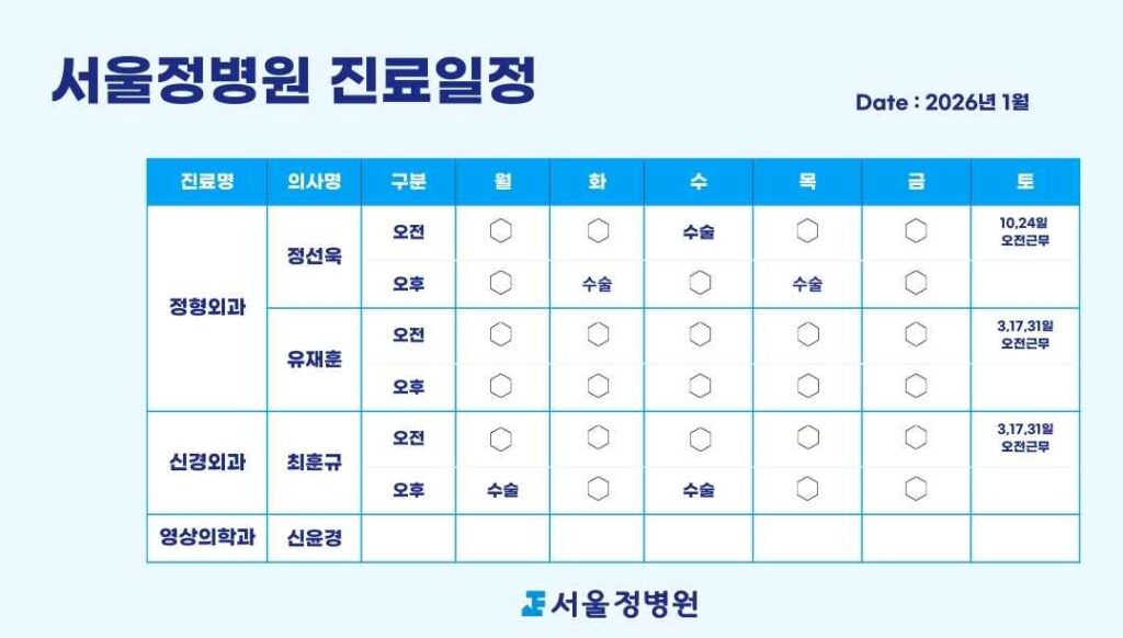 1월 3일 토요일 유재훈,최훈규원장님 근무// 1월 10일 토요일 정선욱원장님 근무// 1월 17일 툐요일 유재훈,최훈규원장님 근무// 1월 24일 토요일 정선욱원장님 근무// 1월 31일 토요일 유재훈,최훈규원장님 근무